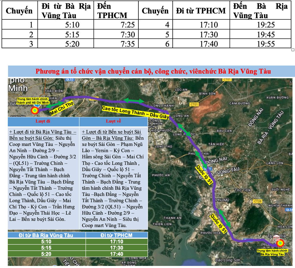 Tối 30/6, Trung tâm Quản lý Giao thông công cộng TP.HCM cho biết, nhằm phục vụ nhu cầu đi lại của đội ngũ cán bộ, công chức, viên chức sau khi sáp nhập địa giới hành chính, từ ngày 1/7 thành phố tổ chức các tuyến xe đưa rước miễn phí từ trung tâm hành chính Bình Dương và Bà Rịa - Vũng Tàu đến TP.HCM và ngược lại.