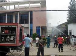Hàng trăm người dân và nhân viên công ty hốt hoảng tháo chạy ra ngoài. Một góc khu vực phía trước tòa nhà bốclửa và khói mù mịt. Nhận tin báo, đội chữa cháy bán chuyên nghiệp của Xí nghiệp Cầu Tre đóng gần đó nhanh chóng điều một xe chữa cháy loại nhỏ tức tốc có mặt triển khai đội hình dập lửa.