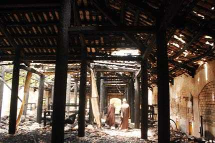 | Toàn bộ phần chánh điện của ngôi chùa bị thiêu rụi hoàn toàn |