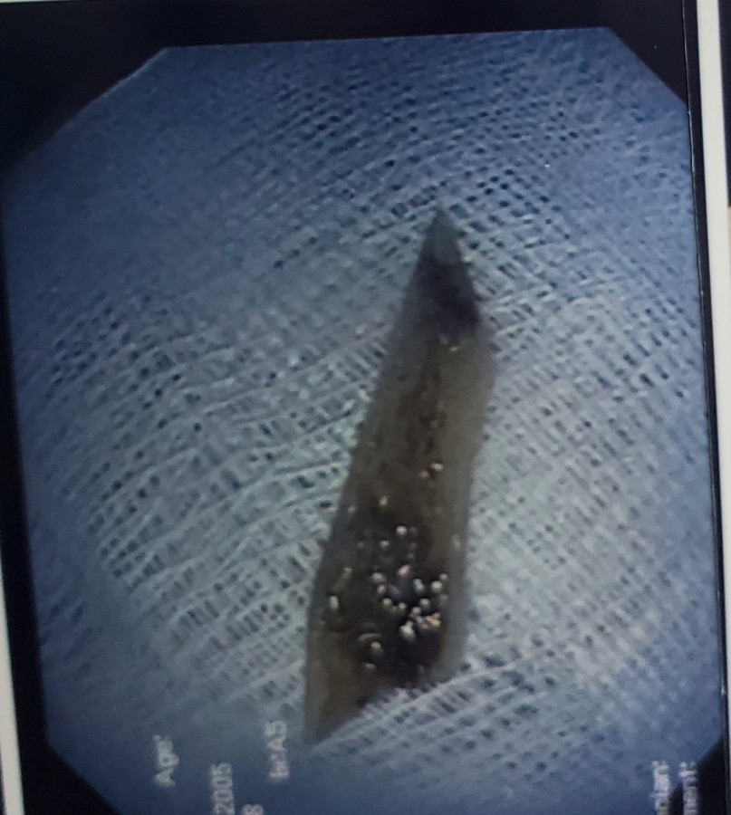 Tại phòng mổ, sau khi người bệnh được gây mê, bác sĩ đưa dụng cụ vào quan sát và lấy dị vật. Sau nhiều nỗ lực, dị vật đã được các bác sĩ lấy ra khỏi cơ thể người bệnh.
