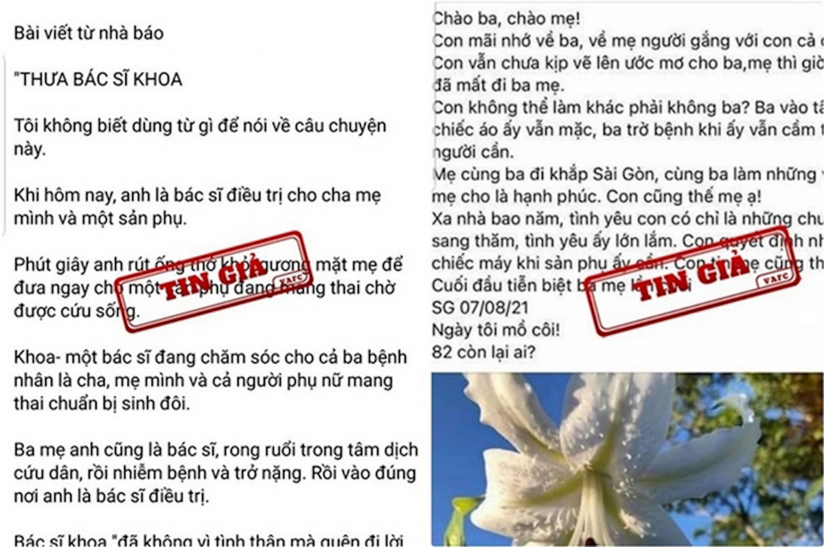Trước đó, tối 7/8, vụ việc trên được đăng tải trên tên trang Facebook cá nhân tên Trần Khoa và một số tài khoản khác được cho là bạn bè của người này với nội dung, bác sĩ Khoa đang chăm sóc bố và mẹ cùng một sản phụ mắc COVID-19 nặng sắp sinh đôi.