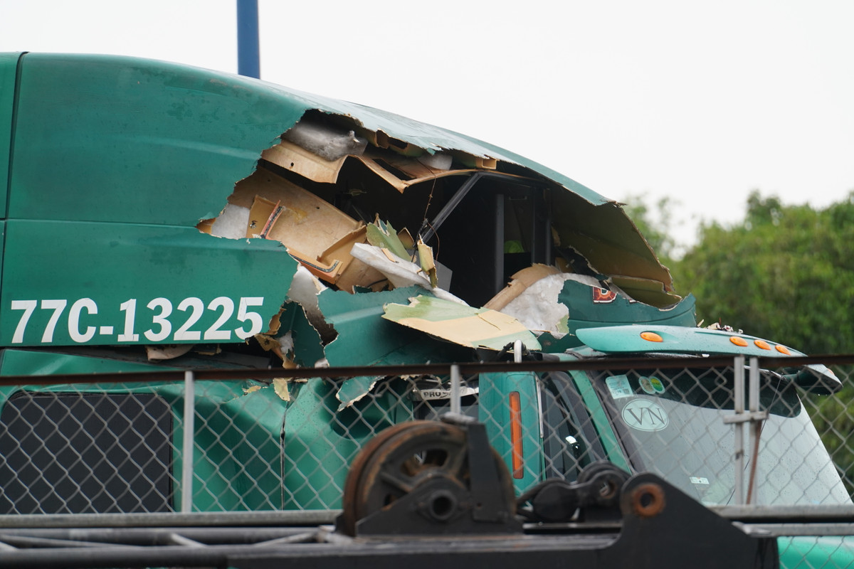 Ông Nguyễn Tuyên (48 tuổi), tài xế xe container bị nạn, kể lại thời điểm xảy ra sự cố: “Khi đó xe đang đổ dốc cầu, di chuyển chậm do kẹt xe. Giàn cẩu đổ ập xuống, đè mạnh vào cabin khiến xe rung lắc dữ dội. May mắn là không có mưa hay gió lớn lúc đó”.