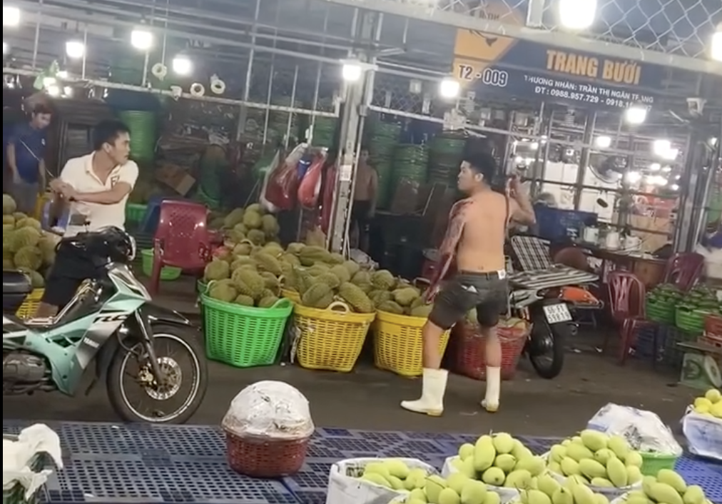 Ngày 17/5, mạng xã hội xuất hiện đoạn clip 2 người đàn ông dùng hung khí đánh nhau tại một chợ đầu mối.