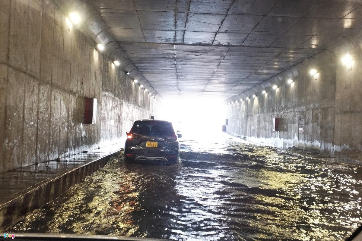 Theo tài xế này, khoảng 50m đường hầm bị ngập, độ sâu hơn nửa bánh ô tô. “Các tài xế phải lái xe đi sát vào phần lề bên trái để tránh nước ngập sâu. Có thể do cơn mưa lớn xảy ra vào tối 12/6 dẫn đến tình trạng này”, anh Danh nói.