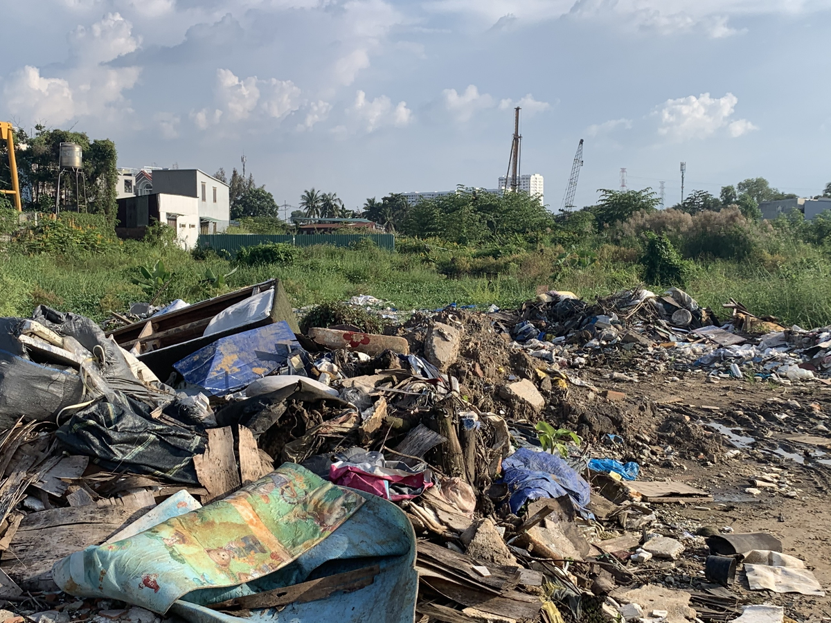 Mớ ngổn ngang đầy rác ở dự án BT tuyến kết nối đường Phạm Văn Đồng với nút giao thông Gò Dưa (TP Thủ Đức).