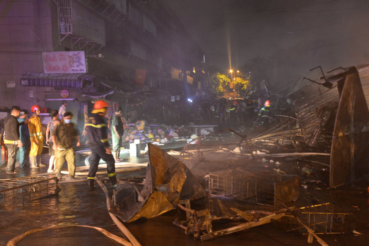 Hiện trường vụ hoả hoạn, nhiều gian hàng bị thiêu rụi trong đêm.