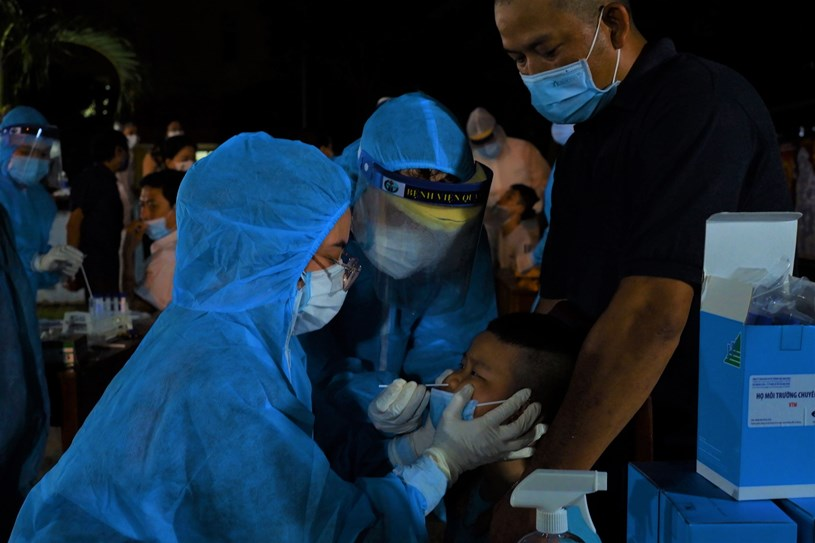 Lực lượng chức năng TP.HCM lấy mẫu xét nghiệm tầm soát cho người dân. (Ảnh: HCDC)