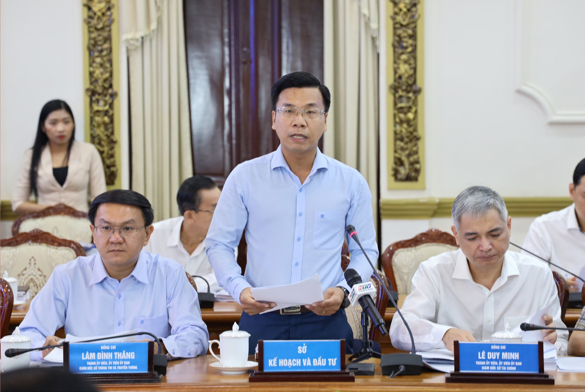 Phó Giám đốc Sở KH-ĐT TP.HCM Phạm Trung Kiên báo cáo tại hội nghị. (Ảnh: TTBC)