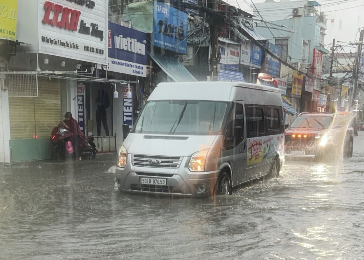 Mưa lớn kéo dài hơn 1 giờ khiến nhiều tuyến đường ở TP.HCM và TP Thủ Đức ngập nặng.