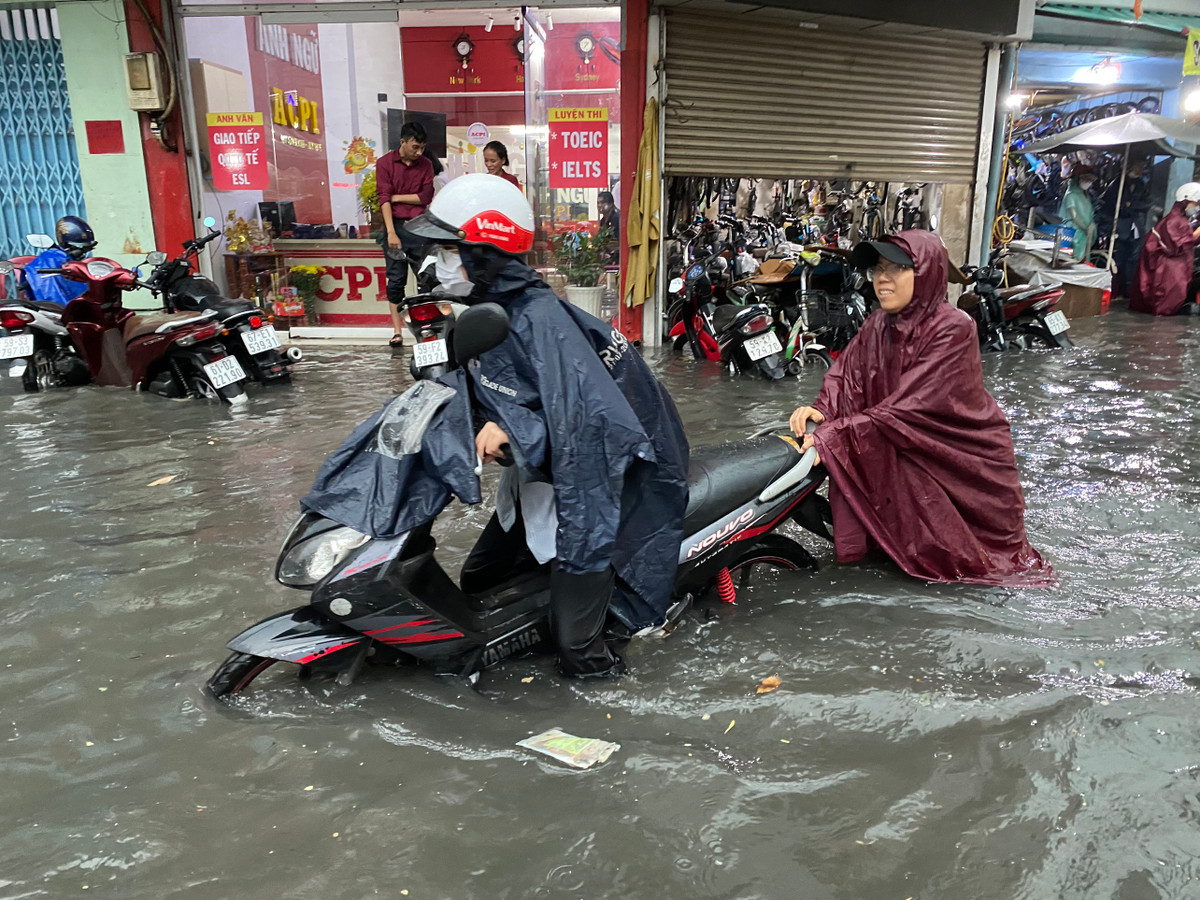 TP.HCM mưa to, nhiều tuyến đường ở Thủ Đức ngập nặng.