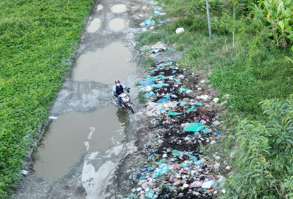 Người dân gặp nhiều khó khăn khi lái xe trên đường có nhiều "ổ voi, ổ gà" và rác thải.