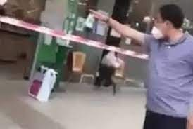 Bất chấp sự ngăn cản của bảo vệ và nhân viên siêu thị, người này tiếp tục vượt qua dây phong toả của siêu thị rồi đi vào trong và tiếp tục lớn tiếng doạ nạt.