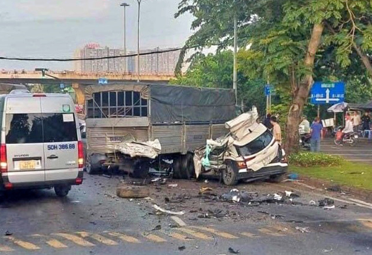 Xe tải sau đó lao tới tông vào ô tô 7 chỗ và 17 chỗ, tạo thành chuỗi tai nạn liên hoàn. Vụ va chạm mạnh khiến ô tô 4 chỗ biến dạng hoàn toàn, hai người trên xe tử vong tại chỗ, các xe còn lại hư hỏng nhẹ.
