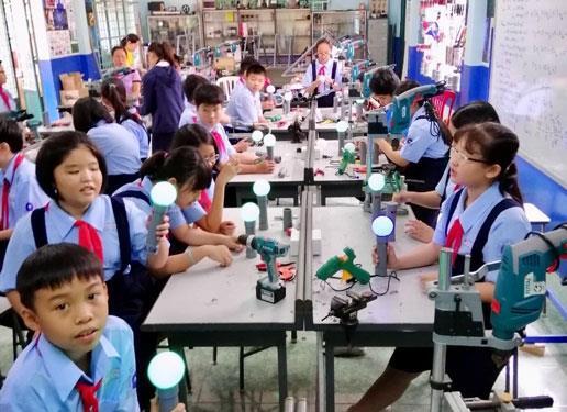 Học sinh Trường THCS Lê Quý Đôn (TP HCM) trong giờ học STEM. (Ảnh: Khoa Nguyễn)