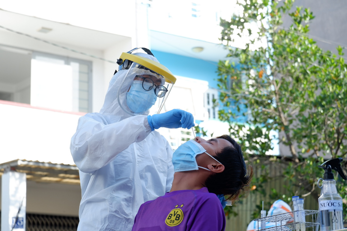 Ngành y tế lấy mẫu tầm soát COVID-19 cho người dân.