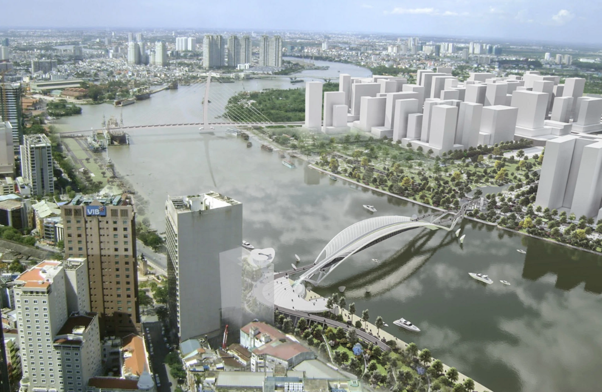 Cầu đi bộ qua sông Sài Gòn có chiều dài 500 m, được bắt đầu từ công viên bến Bạch Đằng (quận 1), chân cầu là công viên bờ sông và ngoài ranh khu A - phía Nam quảng trường trung tâm Khu đô thị Thủ Thiêm (TP Thủ Đức).