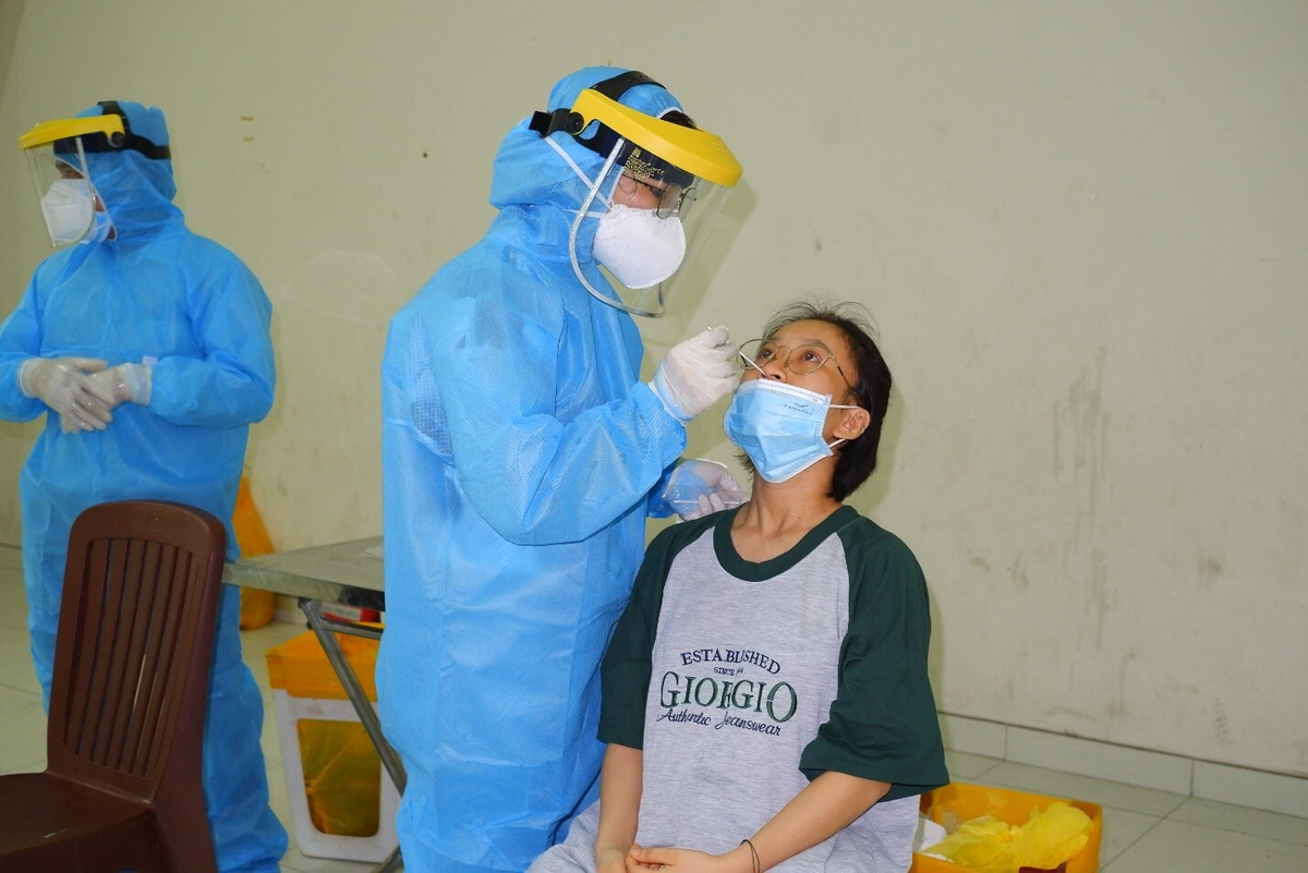 Lực lượng y tế lấy mẫu tầm soát cho người dân. (Ảnh: HCDC)