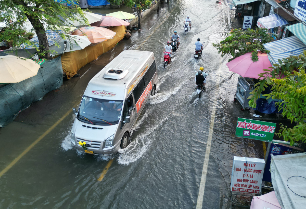 Ghi nhận của PV VTC News, từ 4h30 (ngày 1/10), các tuyến đường Trần Xuân Soạn (quận 7), Phạm Hùng, quốc lộ 50 (huyện Bình Chánh) đã bị ngập vì triều cường dâng cao.