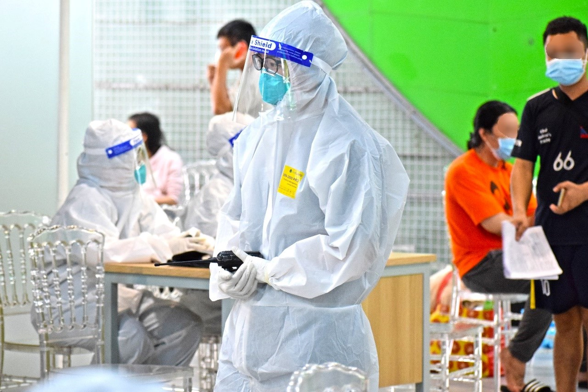 Nhân viên y tế điều phối bệnh nhân tại Bệnh viện dã chiến số 5 (TP.HCM).