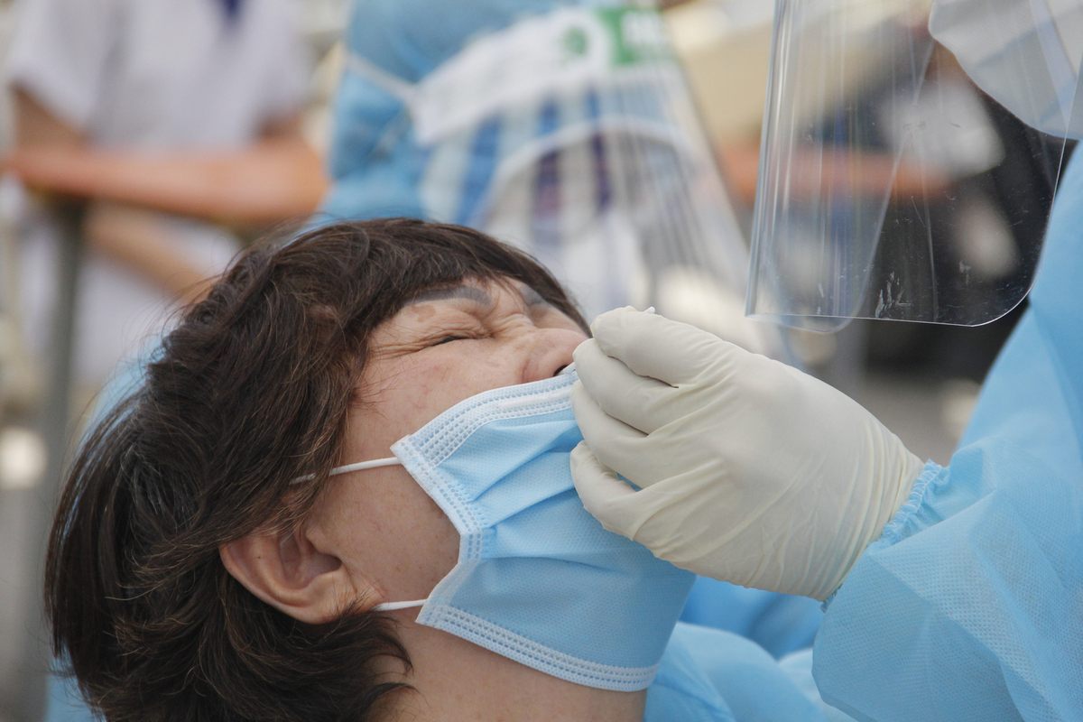 Ngành y tế lấy mẫu xét nghiệm cho người dân.