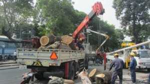 Lực lượng công nhân của Công ty công viên cây xanh và các nhân viên điện lực cũng có mặt tại hiện trường để khắc phục sự cố.