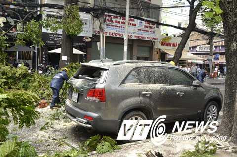 Trước đó, trưa cùng ngày, một cơn gió kèm dông lốc khiến cây lim sét đường kính hơn 20 cm tại ngã ba đường Nguyễn Văn Thủ và Mạc Đĩnh Chi (phường Bến Nghé, quận 1) bị gãy nhánh rơi xuống trần xe ôtô hiệu KIA mang BKS 61 A - 021.61 do tài xế Lê Hồng Sơn (30 tuổi, quê Bình Dương) điều khiển khiến trần xe ôtô bị bẹp, kính hậu bị vỡ. Một ô tô khác mang BKS tỉnh Đồng Nai cũng bị ảnh hưởng.
