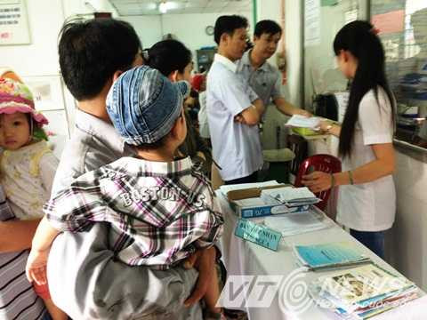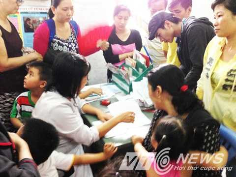 | Nhiều phụ huynh làm thủ tục chích ngừa cho con |