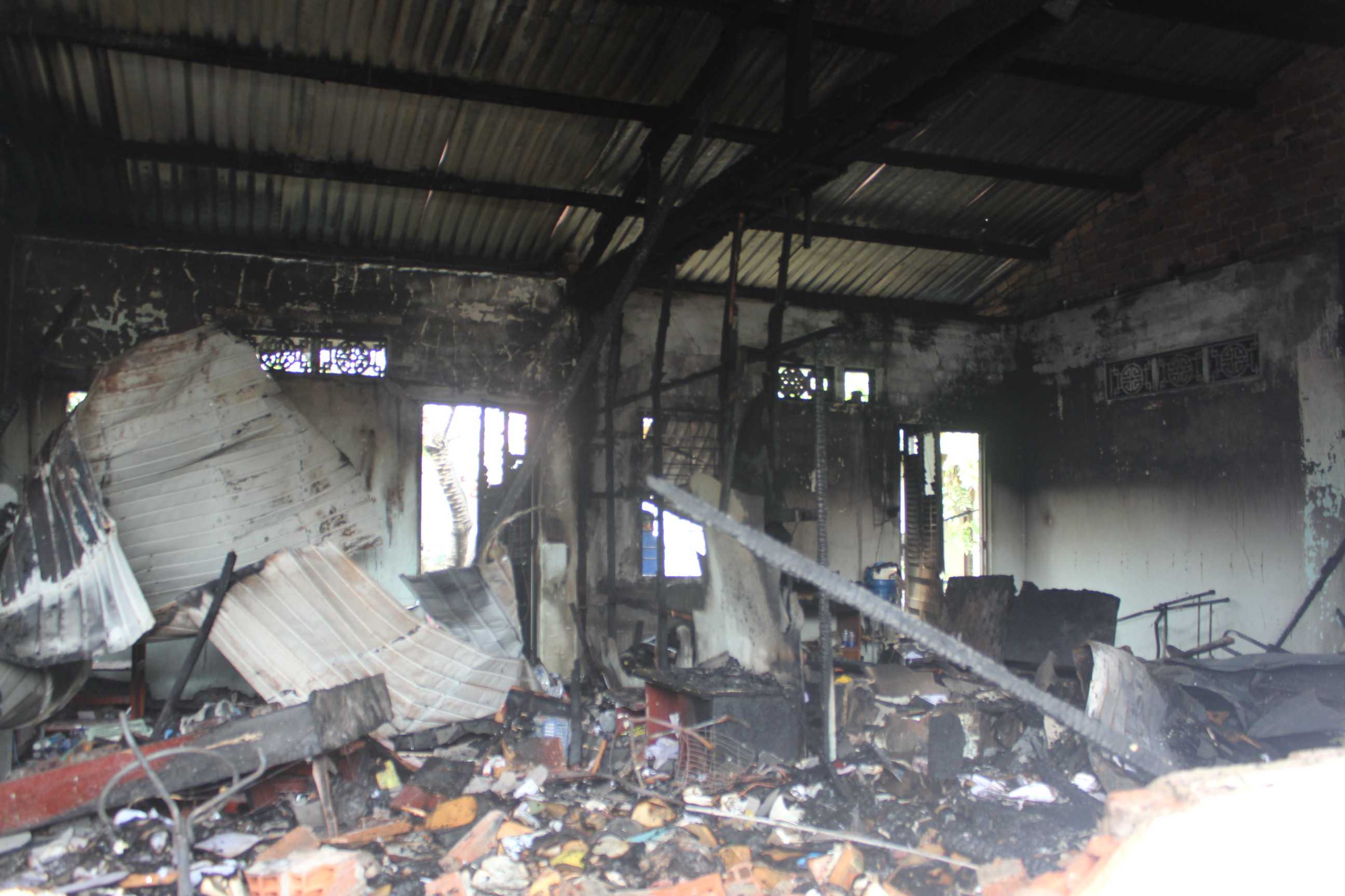 Ba căn phòng cùng nhiều tài sản, vật dụng, kinh sách bên trong bị thiêu rụi.