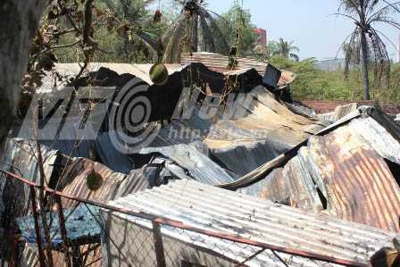 Bên cạnh đó căn nhà (phía sau lưng khu xưởng) của bà Nguyễn Thị Dung bị lửa táp nám đen kịt. Trước sân nhà đồ đạc chất chồng ngổn ngang, cửa kính ngôi nhà bị đập vỡ vụn.