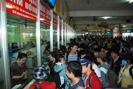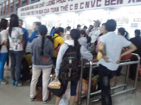 Hành khách tại bến xe miền Tây chiều ngày 27/4/2013 (Ảnh: Phan Cường)