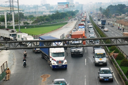 Dòng phương tiện nối đuôi nhau trên Xa lộ Hà Nội (Ảnh: Phạm Nguyễn)