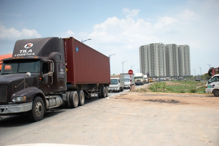 Các đường dẫn vào phà Cát Lái tê liệt (Ảnh: Phạm Nguyễn)