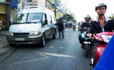 Xe "dù" ngang nhiên dừng đậu trên đường để bắt khách (Ảnh: Phạm Nguyễn)