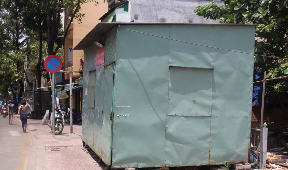 Hai chốt dân phòng nằm trên vỉa hè đường Tầm Vu (quận Bình Thạnh) nhiều năm liền nhưng không thấy hoạt động. (Ảnh: Quang Anh)