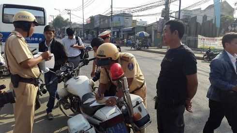 Lực lượng CSGT xử lý các phương tiện vi phạm (ảnh: P.L)