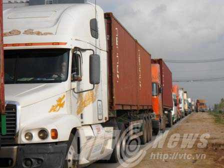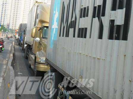 Các phương tiện chủ yếu là xe container nối đuôi nhau kéo dài hơn 5 km, di chuyển rất khó khăn .