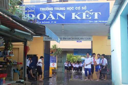 | Nước ngập lênh láng tại trường trung học cơ sở Đoàn Kết |