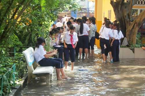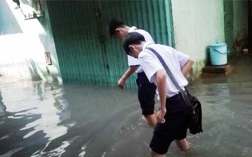 (VTC News) - Nước ngập lênh láng, bốc mùi hôi thối, học sinh Sài Gòn phải lội nước và bịt mũi để đến trường.