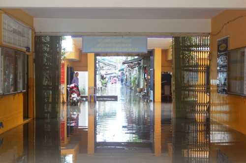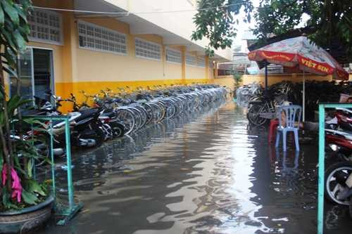 Cũng theo nhân viên y tế này, trước đây ngôi trường bị ngập nặng nên nhà trường đã nâng cấp làm nền cao hơn khu dân cư và tình trạng ngập nước giảm đi rất nhiều.