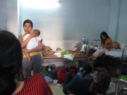 Tại bệnh viện, ngay từ cổng vào đến các phòng khám, phòng lưu bệnh nhân, phòng bệnh, tất cả đều quá tải. Bệnh nhân chen chúc nhau ngồi chờ khám; Người bệnh, người nhà nằm la liệtkhắp các ngõ ngách bệnh viện.