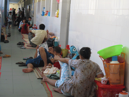 Không chỉ vậy, chỉ cần bước vào cổng bệnh viện, cảnh tượng hàng loạt người bệnh và người nhà bệnh nhân trải chiếu nằm nhếch nhác dưới nền đất diễn ra khắp nơi. Tình trạng ấy không những không được khắc phục mà ngày càng trầm trọng hơn.