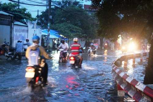 Cơn mưa như trút nước vào khoảng 14h đã làm hàng loạt tuyến đường tại TP.HCM bị tê liệt. Tình trạng ngập sâu lại diễn ra tại các tuyến đường như: Lũy Bán Bích, Đồng Đen, Phan Anh, Lương Thế Vinh, Tô Hiệu… (quận Tân Phú); Hồng Bàng, Hòa Bình (quận 11), Đặng Nguyên Cẩn, An Dương Vương, Kinh Dương Vương, Hậu Giang, Nguyễn Văn Luông (quận 6),…