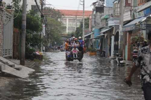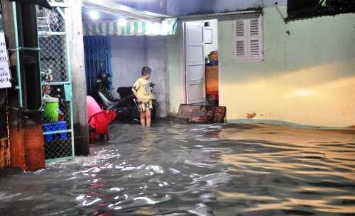 Anh Nguyễn Văn Minh có nhà trong hẻm đường Kinh Dương Vương (quận 6) cho biết: “Nước tràn vào nhà khiến gia đình bị đảo lộn cuộc sống, không thể nấu nướng được gì nên đành lội nước mua cơm hộp về ăn”.