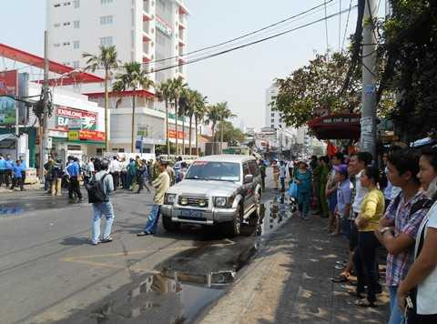 Nhiều nhân viên đang làm việc bên trong tháo chạy tán loạn. Bảo vệ ngân hàng cũng kịp thời di chuyển nhiều xe gắn máy ra ngoài đường để tránh ngọn lửa lây lan bốc cháy.