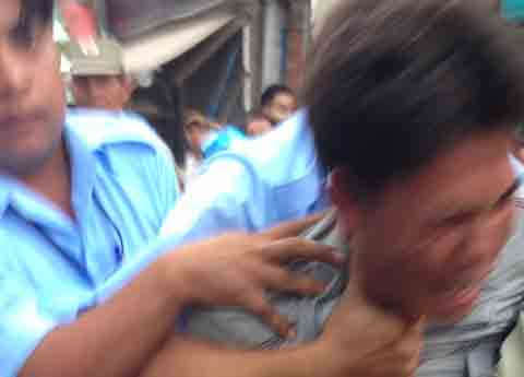 Ông Tình bị hành hung đến ngất xỉu. (Ảnh cắt từ clip người dân cung cấp) |