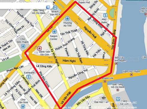 | Vành đai cấm đường có màu đỏ, các phương tiện sẽ không được di chuyển trên các tuyến đường này từ 20h tối 30/4 đến 5h sáng 1/5. |