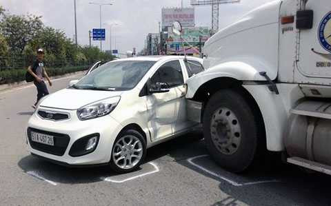 Lúc này, xe ô tô 4 chỗ đang lưu thông trên Quốc lộ 1 (hướng từ An Sương về An Lạc) bất ngờ lao đến cắt ngang trước đầu xe container. Do không làm chủ được tình huống gấp nên container tông ngang vào thân ô tô đẩy đi một đoạn mới dừng lại.
