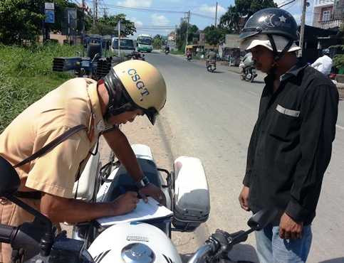 | Tài xế vi phạm bị CSGT lập biên bản. Ảnh: Phan Cường |