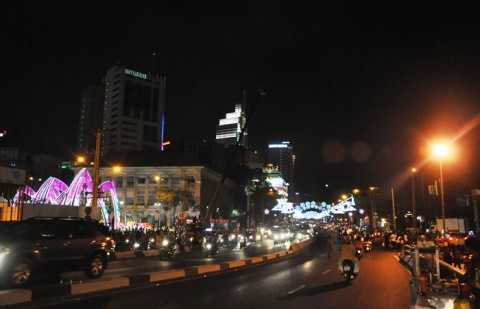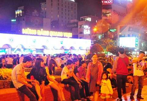 | Khắp đường phố Sài Gòn đông nghẹt người đi xem bắn pháo hoa đêm giao thừa |