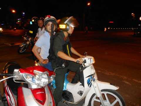 | Lực lượng CSCĐ ra quân trấn áp tội phạm đêm khuya. Ảnh: Phan Cường |